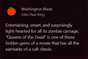 What really grinds my gears is when I read completely ludicrous reviews acting like this thing is some hidden gem, a cult classic, or overflowing with zombie carnage. This idiot from the Washington Blade clearly watched a different movie or got paid in coupons and praise to pretend they did. Note to self, never trust anything this guy recommends.